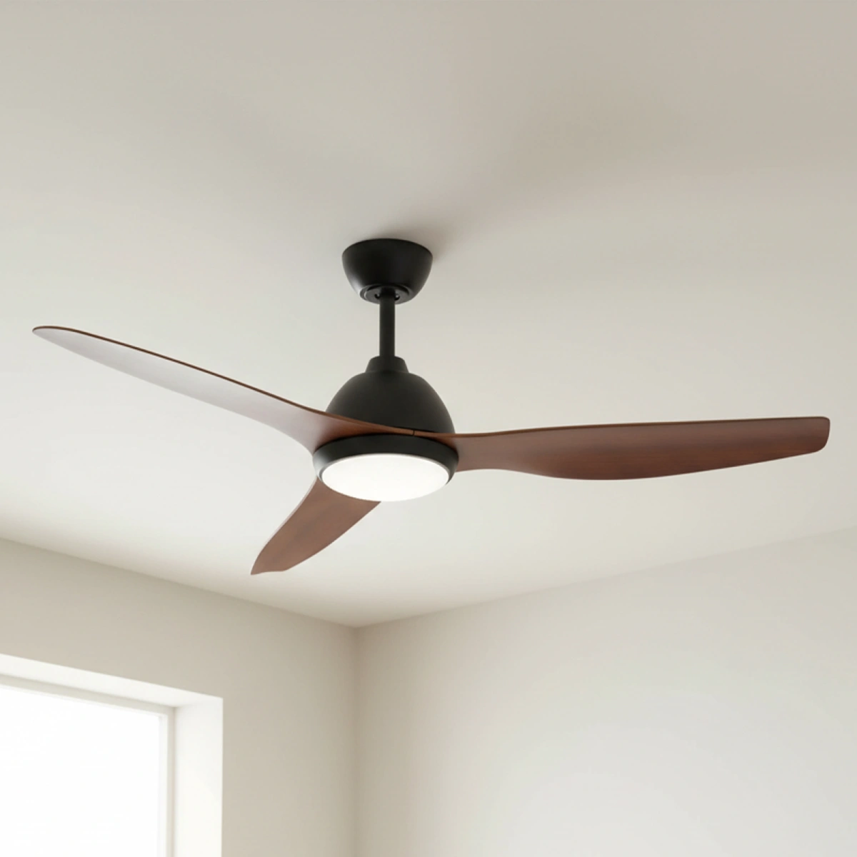 Breeze Ceiling Fan with CCT LED Light & Wall Control by Fanco – Black and Koa 52″