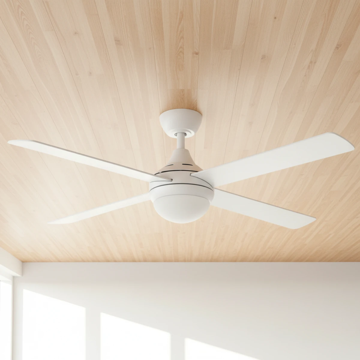 Cooler AC Ceiling Fan by Claro Essentials with CCT LED Light – White 52″
