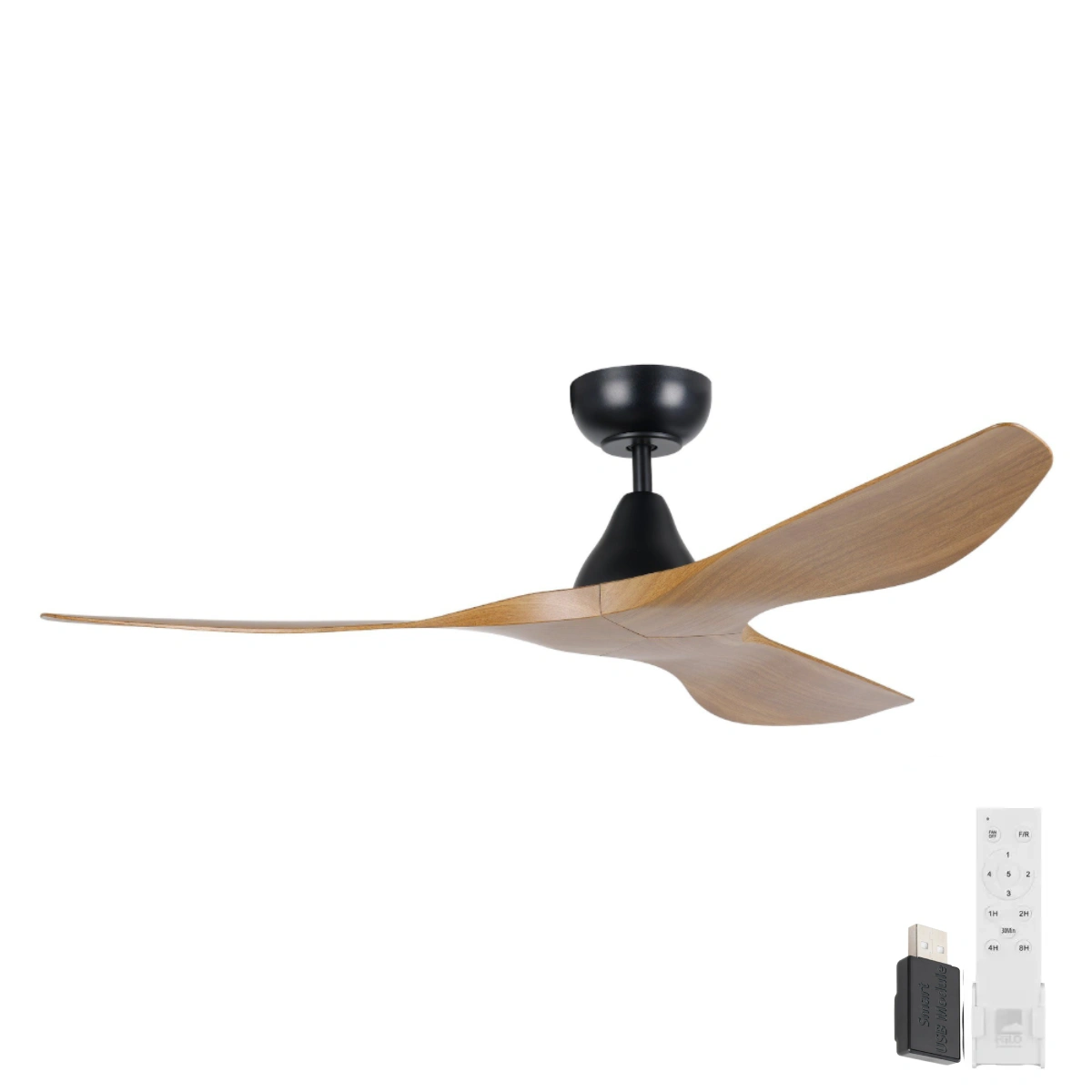 Surf SMART DC Ceiling Fan by Eglo – Black with Burmese Teak Blades 52″