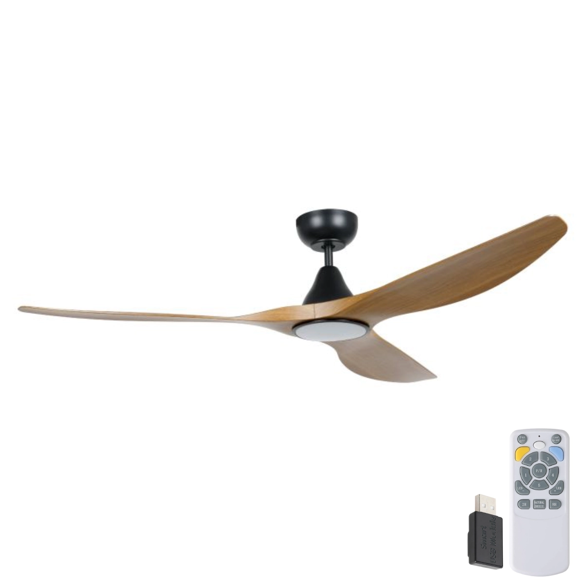 Surf SMART DC Ceiling Fan by Eglo with LED Light – Black with Burmese Teak Blades 60″
